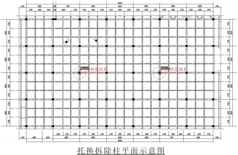 托梁拔柱往往技術(shù)要求高,施工難度大,合理地進(jìn)行托換結(jié)構(gòu)的加固設(shè)計(jì)、加強(qiáng)施工過程中各環(huán)節(jié)的管理和監(jiān)控,是保證托梁拔柱工程安全可靠的關(guān)鍵。
