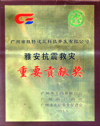 2013年6月14日,我司得到由廣州市工商業(yè)聯(lián)合會、廣州市總商會、廣州市光彩事業(yè)促進會給授予“雅安抗震救災重要貢獻獎”,公司的名稱同時被錄入“光榮冊”中。這是給予我司最大的鼓舞,往后的日子里,我司將加快企業(yè)自身的發(fā)展,持續(xù)承擔社會責任。