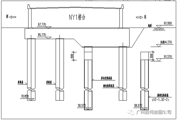 2、既有橋臺地面局部開挖至臺底,對既有橋高程和平面定位進行復(fù)核測量,并將復(fù)測結(jié)果反饋給設(shè)計及監(jiān)理單位;