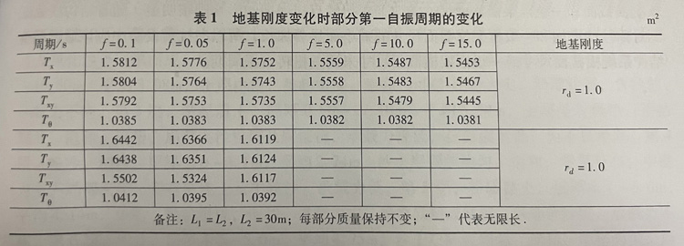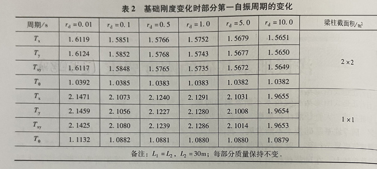 表2基礎(chǔ)剛度變化時部分第一自振周期的變化