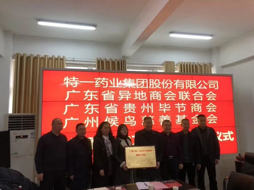 座談會(huì)后,舉行了捐贈(zèng)儀式。由廣東省異地商會(huì)聯(lián)合會(huì)、廣州候鳥慈善基金會(huì)、廣東省貴州畢節(jié)商會(huì)聯(lián)合“特一藥業(yè)集團(tuán)股份有限公司”捐出價(jià)值48萬元藥品,用于公益和幫扶老弱群體。