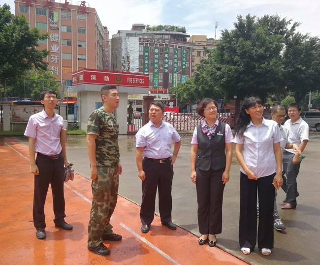 在中國人民解放軍建軍91周年紀(jì)念日即將來臨之際,7月24日上午,中國農(nóng)業(yè)銀行流花支行紀(jì)委書記張劍川先生、沙鳳支行行長吳瑩女士、客戶經(jīng)理許志東先生與我司黨支部書記、工會主席唐野先生,副總經(jīng)理唐軍先生、唐穎女士帶領(lǐng)公司黨員、部分在司員工組成的擁軍慰問團冒著風(fēng)雨來到金沙洲消防中隊,給堅守在滅火救援備戰(zhàn)一線的消防官兵送上了誠摯的問候和“八一”建軍節(jié)的祝賀,并送去了慰問品和部分消暑食品。