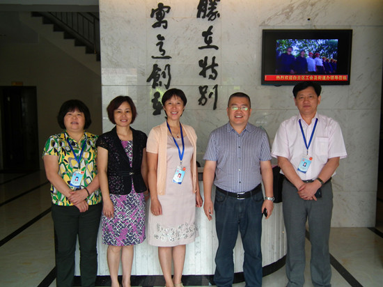 于2013年6月6日上午,廣州市白云區(qū)人大常委會副主任、區(qū)總工會主席莫小云同志,率領(lǐng)區(qū)總工會領(lǐng)導(dǎo)及金沙洲街道辦領(lǐng)導(dǎo)共9人來到勝特加固公司,在我司董事長吳如軍先生、工會主席唐野先生陪同下,對我司鑒泉軒書畫室、員工食堂、員工宿舍、辦公區(qū)域等地進(jìn)行了深入考察,就勝特工會建設(shè)與工會活動展開深刻的交談。