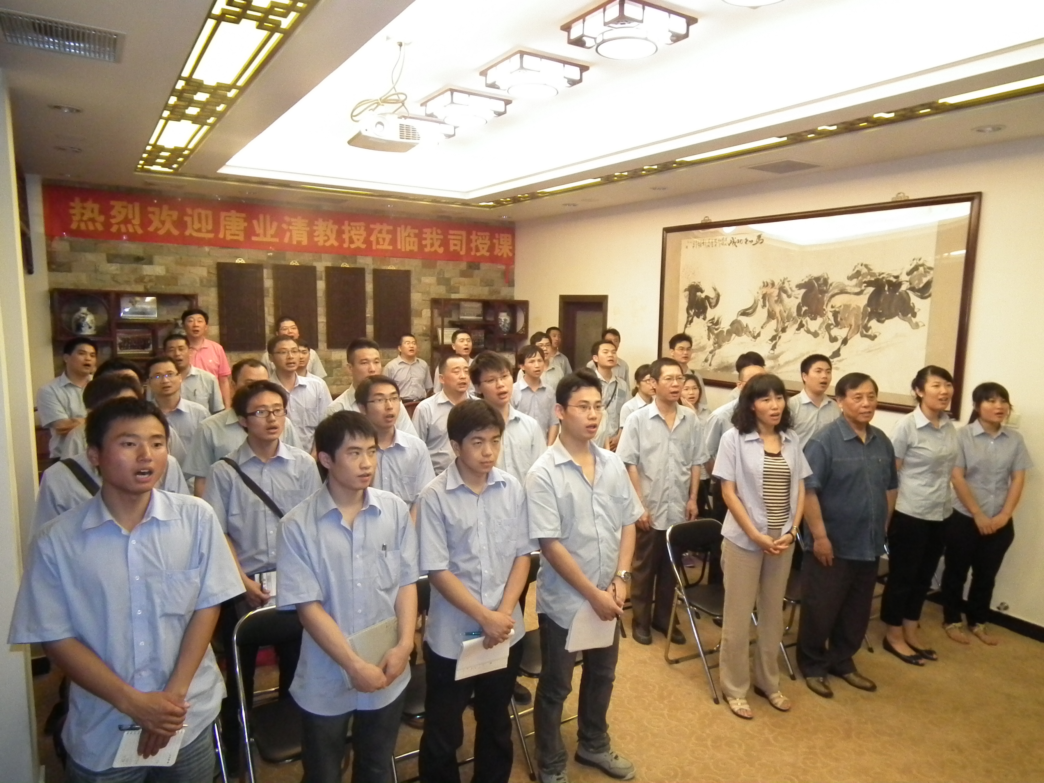 在講座開始之前,我司播放了企業(yè)宣傳片讓唐教授欣賞,讓其了解我司的輝煌歷史,再以洪亮的聲音唱出我們的企業(yè)歌曲,表達(dá)我司員工對其的熱烈歡迎及敬佩之情,唐教授也充分肯定了我司的企業(yè)文化。
