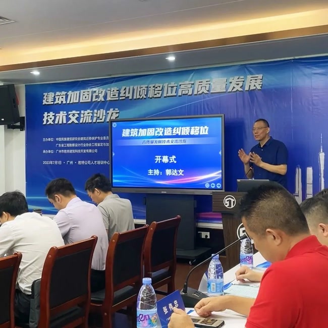 為推動建筑加固改造糾傾移位行業(yè)技術(shù)高質(zhì)量發(fā)展,由中國民族建筑研究會建筑遷移保護(hù)專業(yè)委員會、廣東省工程勘察設(shè)計(jì)行業(yè)協(xié)會工程鑒定與加固分會聯(lián)合主辦的“建筑加固改造糾傾移位高質(zhì)量發(fā)展技術(shù)交流沙龍”活動,于2023年7月1日(全天),在廣州市勝特建筑科技開發(fā)有限公司人才培訓(xùn)中心圓滿召開。本次會議邀請了全國建筑加固改造行業(yè)權(quán)威專家做精彩報(bào)告,分享行業(yè)最新工程實(shí)踐和研究成果,應(yīng)約參加線下沙龍的來自全國專家、學(xué)者近50人,線上觀看超過1000人。本次會議采用線下+線上直播相結(jié)合方式。