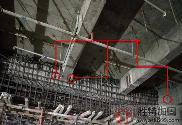 梁加大截面及新增梁鋼筋穿梁比較密集,為保證安全性和施工質(zhì)量,植筋及穿梁鋼筋鉆孔擬采用分批次鉆孔,每次鉆孔完成鋼植筋或鋼筋穿梁注膠后,待植筋膠達(dá)到設(shè)計(jì)強(qiáng)度后再進(jìn)行下批次鉆孔施工。