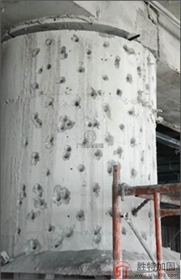 廣東亞洲國際大酒店七樓宴會(huì)廳托梁拔柱改造項(xiàng)目位于廣州市越秀區(qū)環(huán)市東路326-328號(hào),為地下3層,地上9層框架結(jié)構(gòu)體系。由于使用功能改變,需要拔除七樓宴會(huì)廳兩根框架柱(d=1300),形成跨度為23.4m的大開間。