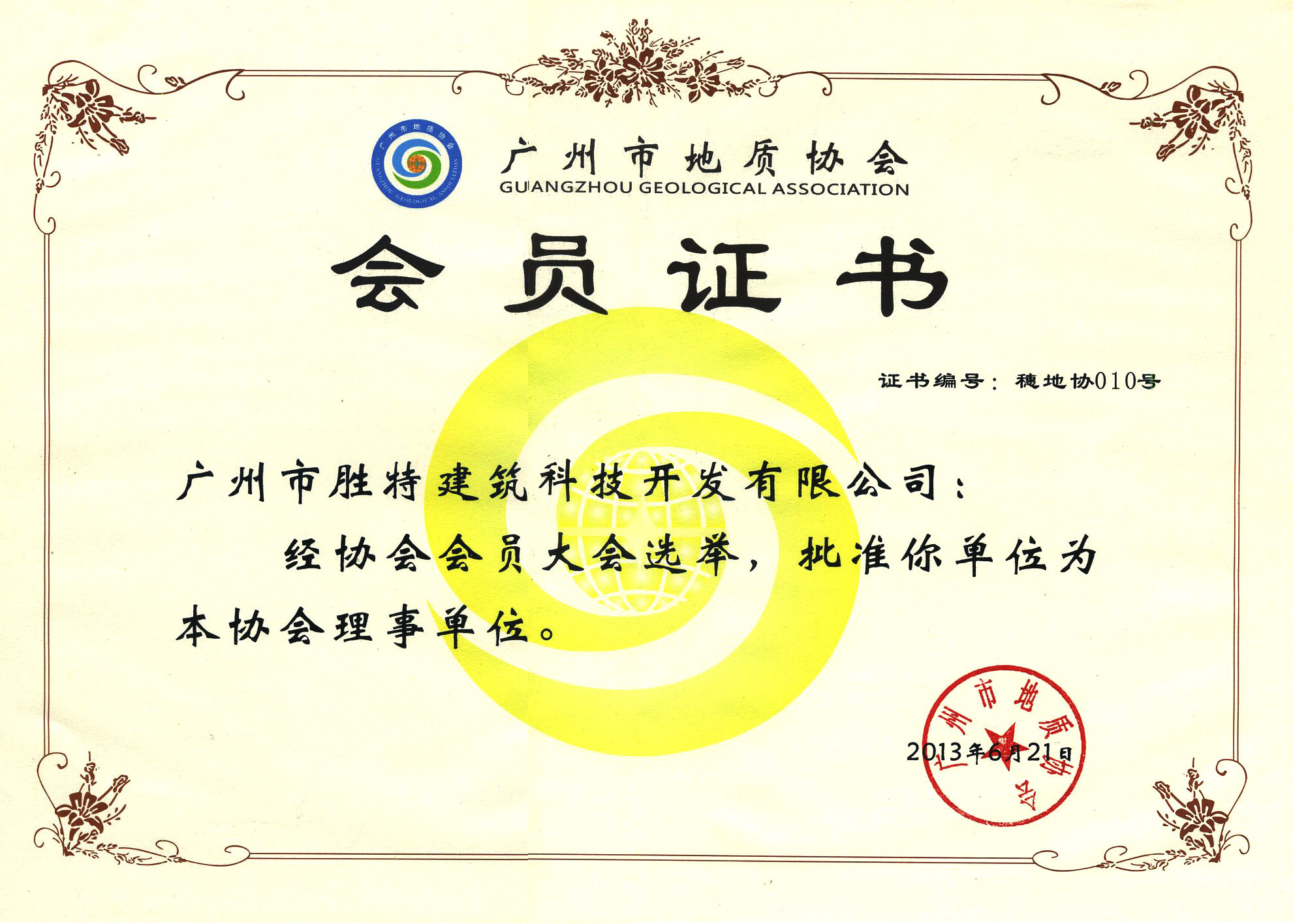 熱烈祝賀我司于2013年6月21日榮任廣州市地質(zhì)協(xié)會(huì)理事單位,該協(xié)會(huì)于2013年1月29日成立,我司作為四家發(fā)起單位之一,積極參與了協(xié)會(huì)籌備組建工作,并于6月21日獲得協(xié)會(huì)頒發(fā)的理事單位證書。