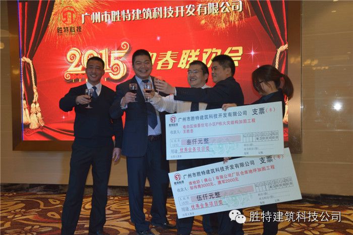 2014年12月31日,公司2014年度年終總結(jié)表彰大會暨2015年度工作部署大會在愛丁堡酒店勝利召開,參會人員包括勝特加固公司全體員工及員工家屬,共計120余人。