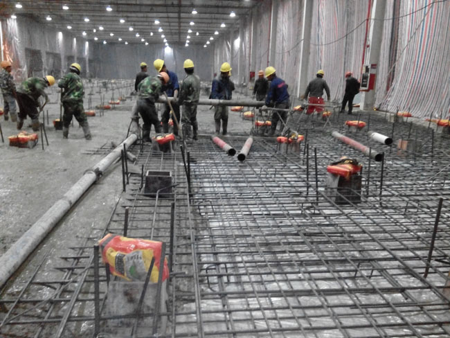 本工程主體結(jié)構(gòu)為單層多跨門(mén)式鋼架,基礎(chǔ)采用預(yù)應(yīng)力砼管樁、旋挖樁及獨(dú)立基礎(chǔ)等多種形式。由于地層中含有淤泥質(zhì)土層且未進(jìn)行有效處理,導(dǎo)致4-8軸線內(nèi)的地面出現(xiàn)明顯的沉陷與開(kāi)裂,多表現(xiàn)在倉(cāng)儲(chǔ)和通道區(qū)域。廠房?jī)?nèi)部該部分區(qū)域用作倉(cāng)庫(kù)和車(chē)輛通道,使用荷載較重,也是導(dǎo)致地面下沉和開(kāi)裂的一個(gè)原因,由于嚴(yán)重影響到主廠房的正常使用,根據(jù)業(yè)主要求對(duì)原地面結(jié)構(gòu)進(jìn)行加固處理。整個(gè)地坪基礎(chǔ)加固過(guò)程,我司共拆除原素混凝土地板17280㎡、新做結(jié)構(gòu)地板17280㎡、群錨靜壓樁780根。該工程用到的群錨靜壓樁專(zhuān)利技術(shù)(ZL201120281350.1)后續(xù)也多次運(yùn)用在同類(lèi)型基礎(chǔ)加固工程當(dāng)中,并體現(xiàn)出很好的處理效果。