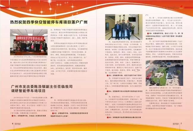 二、廣州四季快安智能停車場有限公司簡介及相關(guān)資訊報道:四季快安智能停車庫是2014年李克強總理從意大利引進的成熟技術(shù),僅需20米直徑的空間,深15至20m,即可建成停放108輛車位的地下智能車庫,車庫內(nèi)設(shè)有消防、防排水、照明、排風(fēng)、檢修走道等附屬設(shè)施,車庫建成后,車庫出入口僅占35平方,其它將還路于民,還廣場于民,還公園于民。該車庫建設(shè)總投資約2000~2500萬元,土建施工時間100天,機械安裝調(diào)試60天,其中建筑結(jié)構(gòu)保用90年,機械系統(tǒng)保用50年。該車庫特點:每車停、取車時間45秒,操作方便,人不用下車庫。若需要停放更多的車輛也可實施。