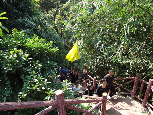 廣州白云山,是新“羊城八景”之首、國家4A級景區(qū)和國家重點風景名勝區(qū)。時值三月,春意盎然,正是踏青春游的好時節(jié),勝特人高舉著旗幟挺進白云山,一路上充滿歡聲笑語。在半山腰的小廣場上,可以看見大半個廣州,小蠻腰在遠處屹立,高樓大廈盡收眼底。