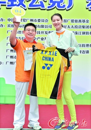 在活動當(dāng)天的慈善拍賣活動中,我司分別以2.2萬元、3萬元競投得羽毛球世界冠軍謝杏芳的簽名球衣及李廣志書畫作品《蘭亭序》。