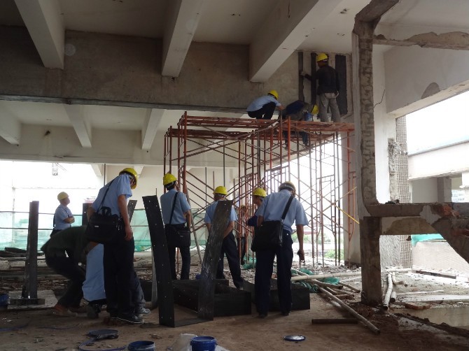 本工程的主要加固工藝有柱加大截面、梁粘鋼、板面粘鋼、、植筋、鋼筋混凝土、拆除等工藝進(jìn)行加固改造,并對部分大范圍剪力墻進(jìn)行托梁拔墻等。