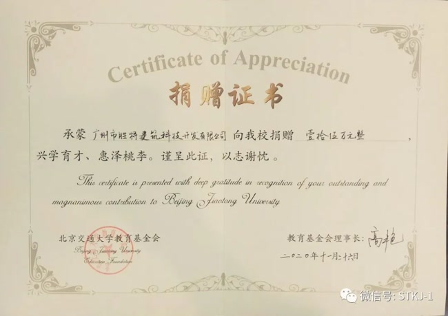 2020年11月26日下午我司捐贈(zèng)的“隧道與地下工程研究基金”在北京交通大學(xué)知行大廈舉行捐贈(zèng)儀式,由北京交通大學(xué)土建學(xué)院馬強(qiáng)黨委書記主持,廣州市勝特建筑科技開發(fā)有限公司吳如軍董事長與北京交通大學(xué)教育基金會(huì)陳磊副秘書長簽訂捐贈(zèng)協(xié)議,捐贈(zèng)金額十五萬元人民幣,基金用于隧道與地下工程研究,陳磊副秘書長向吳如軍董事長頒發(fā)了捐贈(zèng)證書。