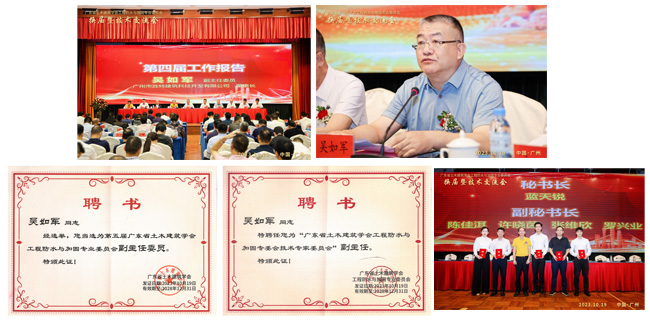 會(huì)上,吳如軍董事長作為專委會(huì)副主任作第四屆工作報(bào)告,表示將繼續(xù)發(fā)揮專委會(huì)的作用,為政府和行業(yè)提出專業(yè)的技術(shù)支持和服務(wù),促進(jìn)行業(yè)更健康、更良性、更長久的發(fā)展。在換屆選舉會(huì)上,吳如軍董事長連任“第五屆廣東省土木建筑學(xué)會(huì)工程防水與加固專業(yè)委員會(huì)副主任委員”、同時(shí)被聘為“廣東省土木建筑學(xué)會(huì)工程防水與加固專委會(huì)技術(shù)專家委員會(huì)副主任”;許曉茵綜合研發(fā)中心副總經(jīng)理被聘為“第五屆廣東省土木建筑學(xué)會(huì)工程防水與加固專業(yè)委員會(huì)副秘書長”。