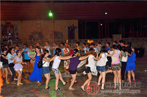 晚餐后,是導(dǎo)游安排參加的篝火晚會。輕快動感的音樂,佤族姑娘和小伙子的精彩表演洗去了一天的疲憊,同事們紛紛投入歡樂諧趣的互動游戲中……