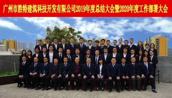 2019年12月31日,廣州市勝特建筑科技開發(fā)有限公司2019年度總結(jié)大會暨2020年度工作部署大會在會議室召開。公司董事長吳如軍、黨支部書記工會主席唐野、副總經(jīng)理唐軍、唐穎、吳軍勝等主要領導班子以及公司各職能中心全體員工共50余人參加大會。會議由技術(shù)研發(fā)中心副總經(jīng)理王敏主持。