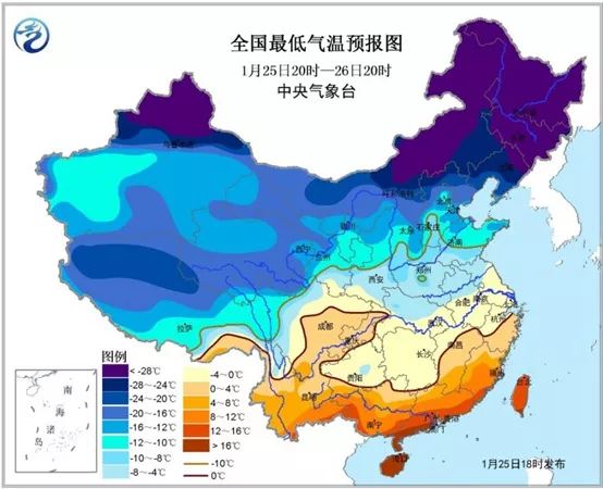 中央氣象臺1月25日18時繼續(xù)發(fā)布寒潮藍(lán)色預(yù)警。25日至26日,我國中東部部分地區(qū)仍有4~5級偏北風(fēng),西南地區(qū)東南部、華南西部和北部等地氣溫下降6~8℃,部分地區(qū)降溫幅度可達(dá)10~12℃;期間,最低氣溫0℃線將南壓至江南東北部至廣西東北部、貴州南部等地,-10℃線位于黃淮東部-華北南部-西北地區(qū)東部一線。