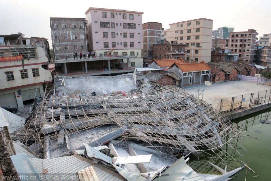 2014年11月15日凌晨4時10分,廣州市白云區(qū)鐘落潭長腰嶺村二隊潘氏祠堂旁一棟6層在建民房坍塌。事故造成2人死亡,7人受傷,傷者已送往醫(yī)院進行救治。