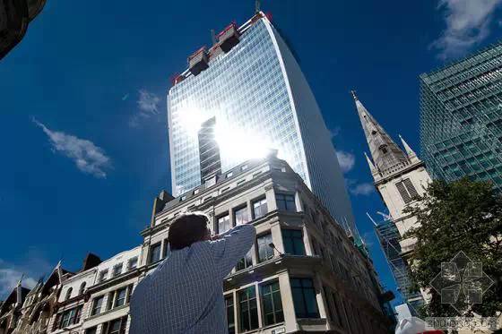 1、倫敦金融區(qū)的“對(duì)講機(jī)”摩天大樓。這座大樓被漂亮的玻璃幕墻包裹得嚴(yán)嚴(yán)實(shí)實(shí)。由于外墻形狀呈輕微的弧形,因此玻璃幕墻的反光高度聚焦在一個(gè)狹窄的區(qū)域。迄今為止它已經(jīng)烤化了多輛汽車的車廂,還點(diǎn)著過數(shù)塊地毯。