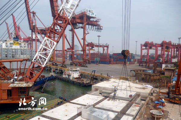 據(jù)悉,天津港北疆港區(qū)22-24#碼頭結(jié)構(gòu)加固改造工程,自2013年2月16日開工以來,已經(jīng)陸續(xù)完成了各大單項(xiàng)工程,創(chuàng)造了施打砼方樁提前20天完成、現(xiàn)澆樁帽提前15天完成、原碼頭結(jié)構(gòu)修復(fù)改造提前18天完成的佳績,工程質(zhì)量及安全管理情況均得到了業(yè)主及質(zhì)監(jiān)站的好評(píng)。
