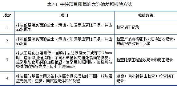 主控項目質(zhì)量的允許偏差和檢驗方法,如表7-1所示。