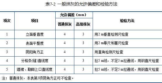 一般抹灰工程質(zhì)量的允許偏差和檢驗方法應符合表7-2的規(guī)定。